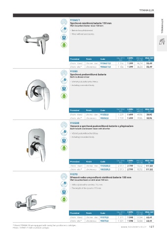 Mixers TITANIA 91 with standard cartriges. www.novaservis.cz 127