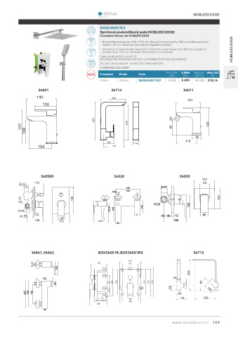 • Dimension of fixed shower head 250 × 250 mm. Fixed shower arm 400 mm.. Length of NOBLESS EDGE