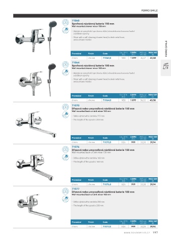 • Baterie se samočistící sprchovou růžicí, vícezámkovou kovovou hadicí