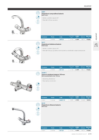 Provedení Finish Code Bez DPH S DPH Without With VAT AQUAMAT