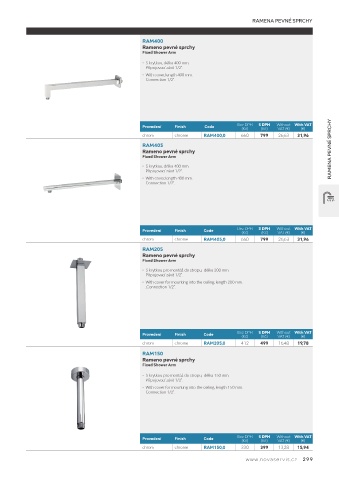 Rameno pevné sprchy RAMENA PEVNÉ SPRCHY