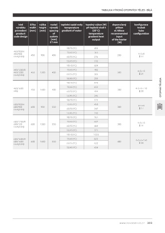 TABULKA VÝKONŮ OTOPNÝCH TĚLES - BÍLÁ