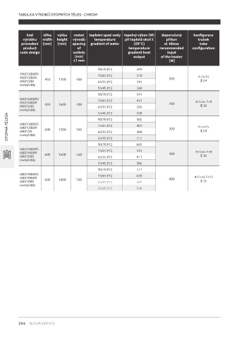 TABULKA VÝKONŮ OTOPNÝCH TĚLES - CHROM
