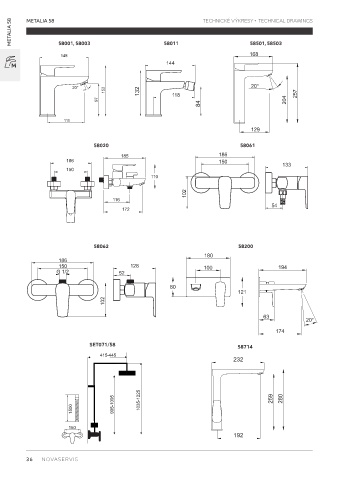 METALIA 58 METALIA 58 58001, 58003 58011 TECHNICKÉ VÝKRESY • TECHNICAL DRAWINGS 58501, 58503 58020 58061 58062 58200 SET071/58 58714 36 NOVASERVIS