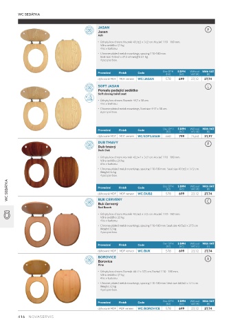 WC SEDÁTKA Provedení Finish Code Bez DPH S DPH Without With VAT