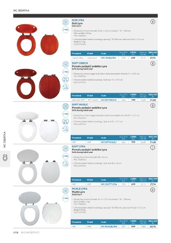 WC SEDÁTKA Provedení Finish Code Bez DPH S DPH Without With VAT