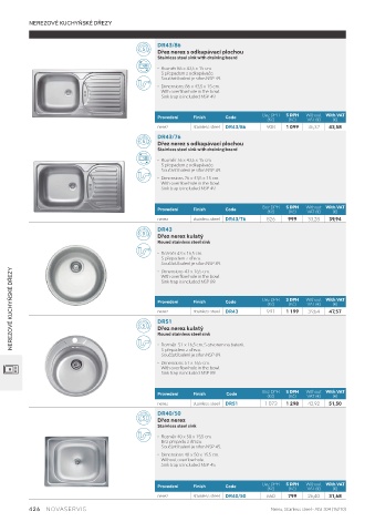 NEREZOVÉ KUCHYŇSKÉ DŘEZY Provedení Finish Code Bez DPH S DPH Without With VAT