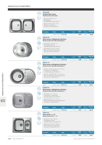 NEREZOVÉ KUCHYŇSKÉ DŘEZY Provedení Finish Code Bez DPH S DPH Without With VAT