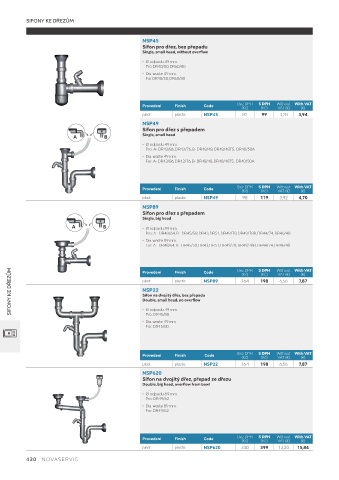 SIFONY KE DŘEZŮM Provedení Finish Code Bez DPH S DPH Without With VAT