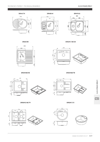 TECHNICKÉ VÝKRESY • TECHNICAL DRAWINGS KUCHYŇSKÉ DŘEZY DR44/74 DR48/64 DR49/62 DR60/80 DRGM1/48/58 DRGM48/58 DRGM48/78 KUCHYŇSKÉ DŘEZY DRGM3/48/79 DRGM1/51 www.novaservis.cz 437