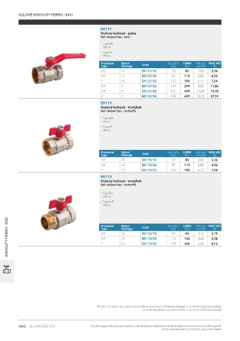 460 NOVASERVIS Všechny typy kohoutů jsou baleny a dodávány po krabičkách (malé balení) nebo kartónech (velké balení).