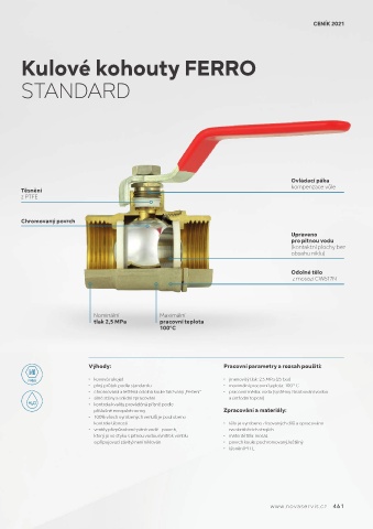 • chromovaná a leštěná odolná koule takzvaný „Pečení” • pracovní média: voda (systémy zásobování vodou
