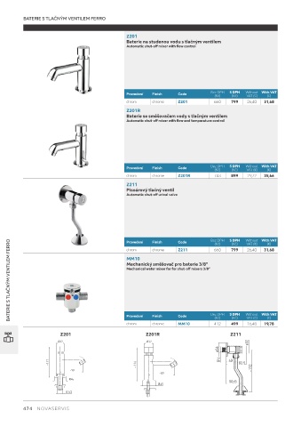 BATERIE S TLAČNÝM VENTILEM FERRO Provedení Finish Code Bez DPH S DPH Without With VAT