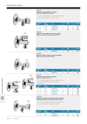 ROHOVÉ VENTIL Y FERRO * • Type M contains a sleeve nut for pipe connection. Bez DPH S DPH Without With VAT