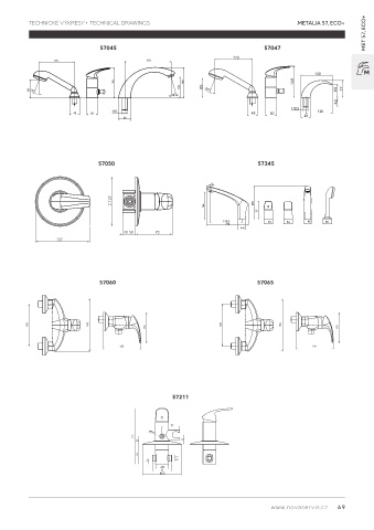 MET 57, ECO+ TECHNICKÉ VÝKRESY • TECHNICAL DRAWINGS METALIA 57, ECO+ 57045 57047 57050 57345 15° 166 190,5 254 45 57060 57065 57211 www.novaservis.cz 69
