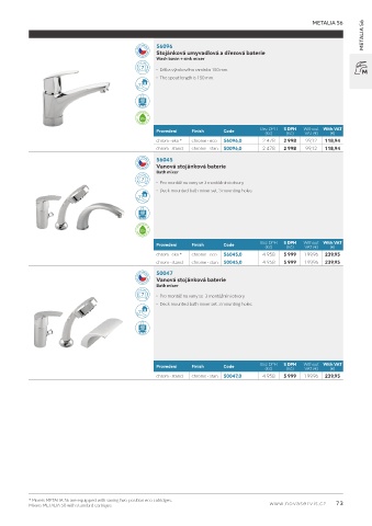 Mixers METALIA 50 with standard cartriges. www.novaservis.cz 73