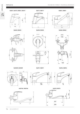 METALIA 56 METALIA 56 56011, 50011 TECHNICKÉ VÝKRESY • TECHNICAL DRAWINGS 56001, 56015, 50001, 50015 56081, 50081 56020, 50020 56050, 50050 56060, 50060 56050R, 50050R 56091, 50091 56096, 50096 56070A, 50070A 56070, 50070 76 NOVASERVIS