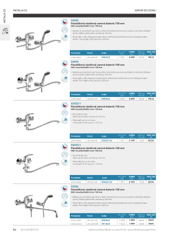 86 NOVASERVIS Výtoková ramínka Metalia viz. strana 99-101. Spouts Metalia see page 99-101.