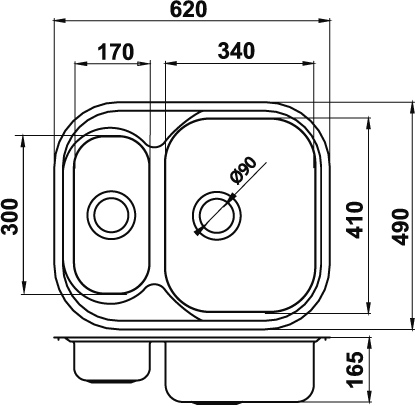 Vnější rozměr 49x62 cm a hloubka 16,5 cm. Dvojitý kuchyňský dřez s přepadem. Součástí balení je sifon NSP 620. Prodloužená záruka 5 let.