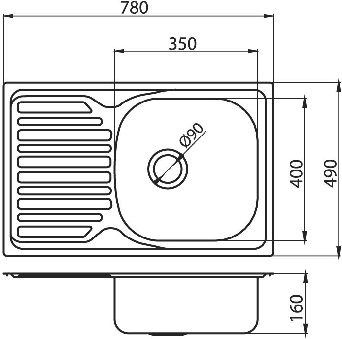 Vnější rozměr 49x78 cm a hloubka 16 cm. Kuchyňský dřez s přepadem a s odkapovou plochou. Součástí balení je sifon NSP 89. Prodloužená záruka 5 let.