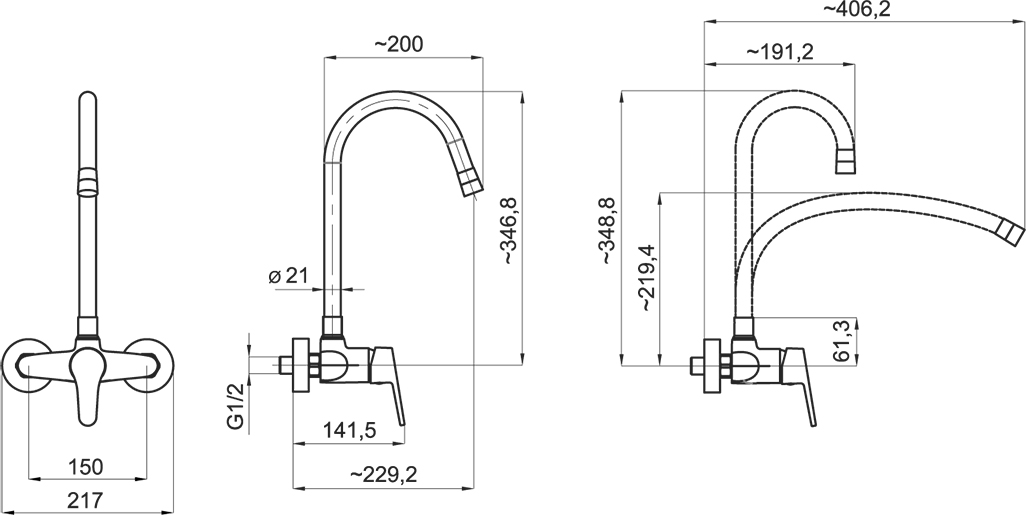 Kvalitní a odolná keramická kartuše 35 mm s prodlouženou zárukou 5 let. Prvotřídní povrchová úprava. Dřezová nástěnná baterie s roztečí 150 mm s horním vývodem a FLEXI ramenem.