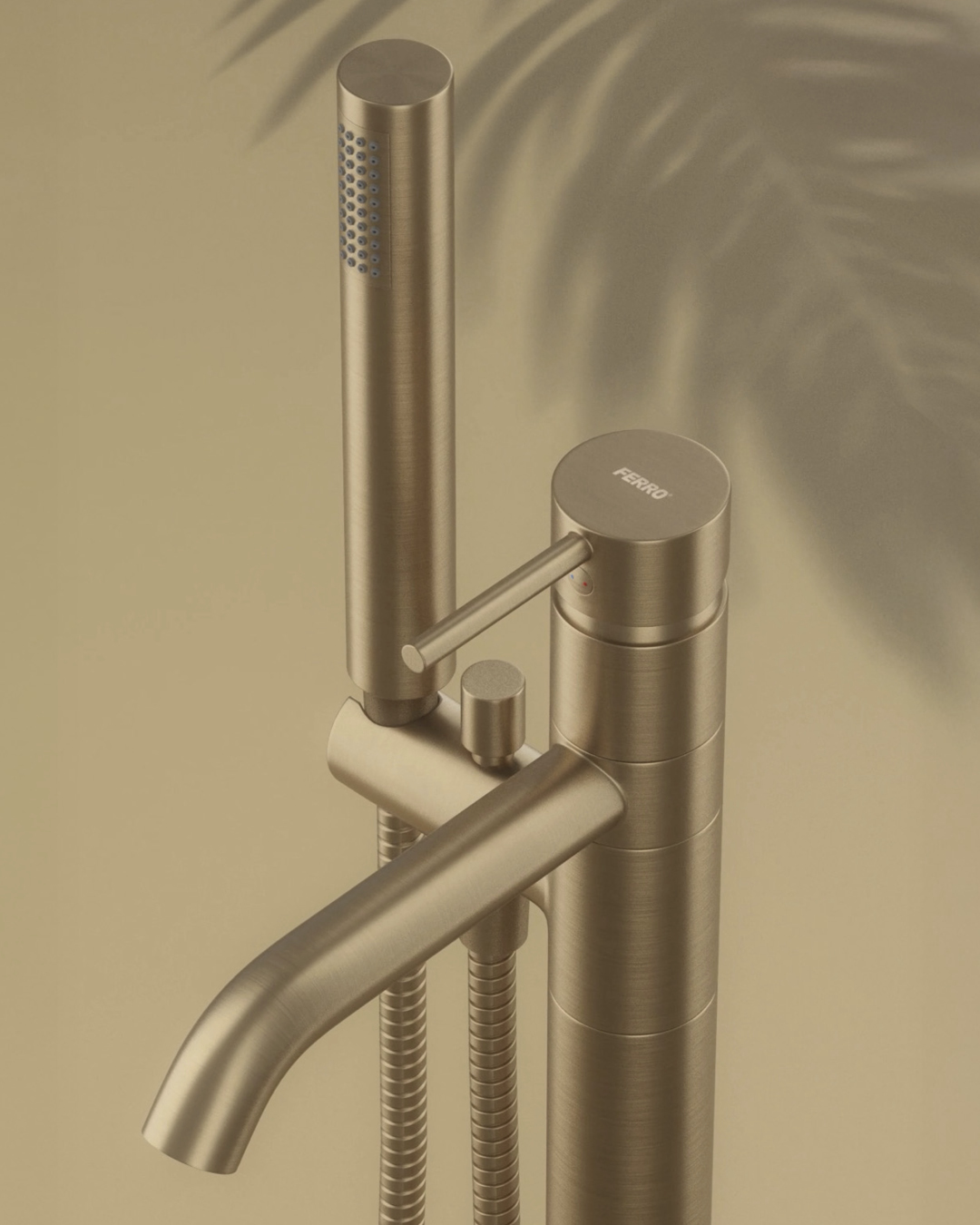 FERRO CIRICULUS přináší do tohoto prostoru harmonii. Jeho proporce uklidňují, jeho povrchy pracují se světlem, jeho forma působí přirozeně a jistě. Není to jen baterie. Je to detail, který udává rytmus celého interiéru.
