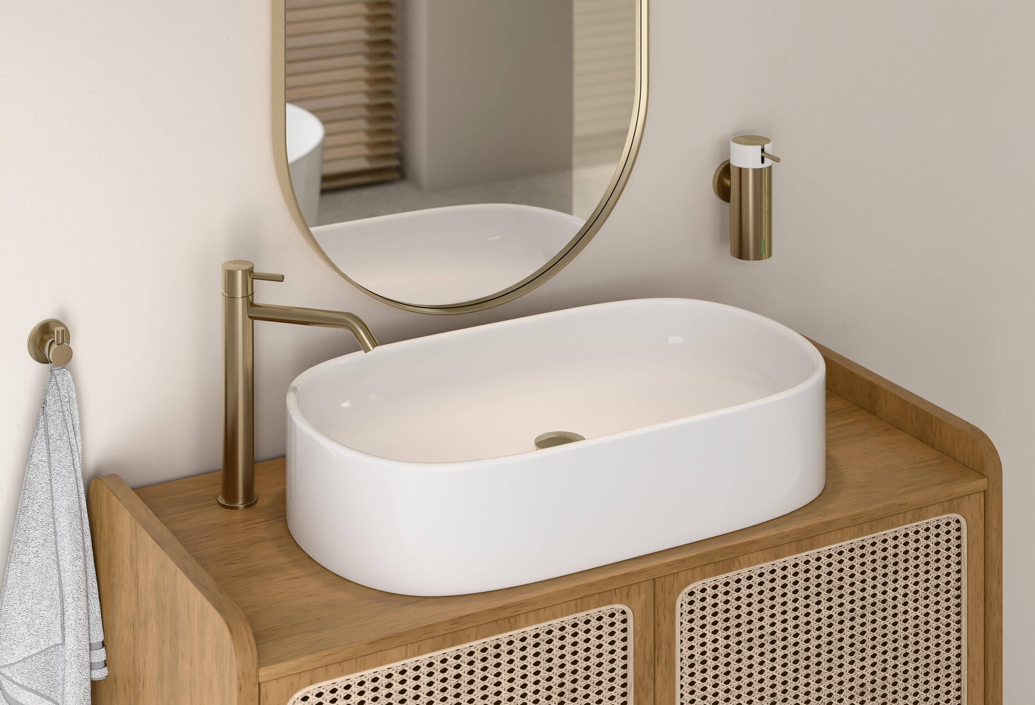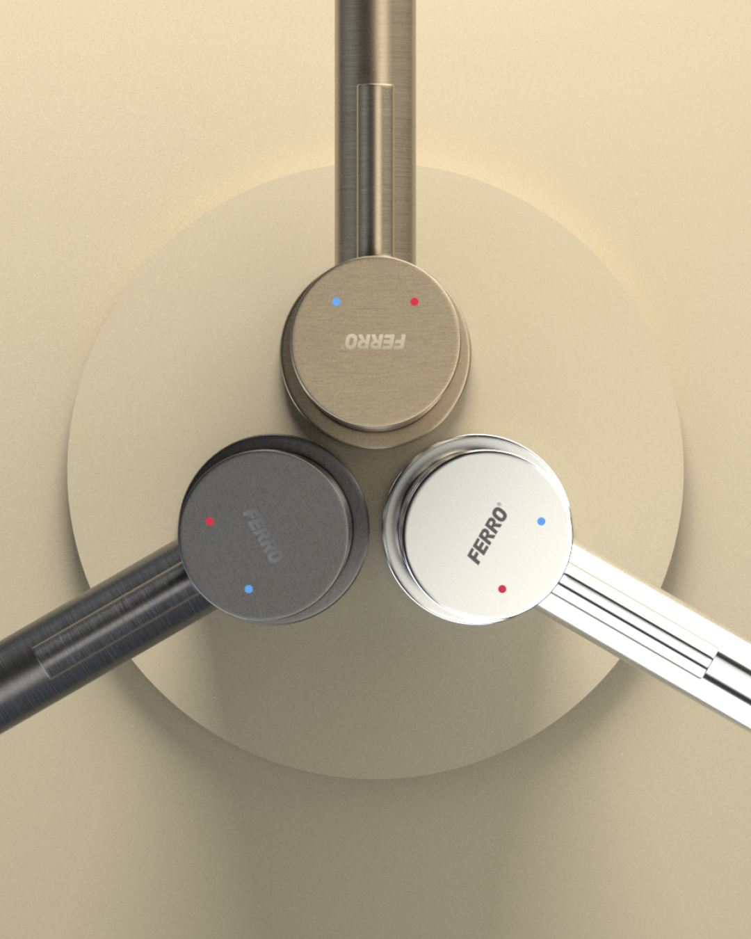 Pro dokonalý vizuální soulad lze kolekci doplnit koupelnovými doplňky řady FERRO SMILE ve stejných barevných provedeních (leštěná nerez, Gun Metal, Brushed Gold). Výsledkem je prostor, kde každý detail patří na své místo.