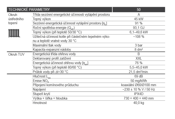 Kondenzační závěsný kombinovaný plynový kotel, Ecocondens Crystal Plus 50, 50 kW