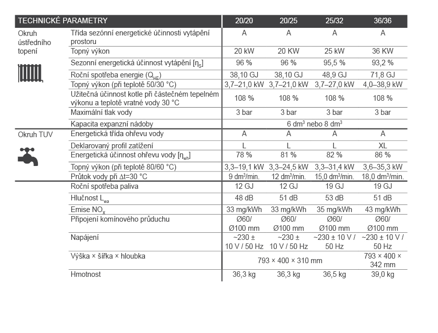 -nízká citlivost výměníku na špatnou kvalitu vody, což umožňuje instalaci kotle i ve starších instalacích ústředního vytápění