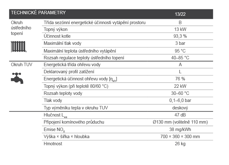 Atmosférický závěsný plynový kombinovaný kotel MiniMax Eco 13/22 kW - propan
