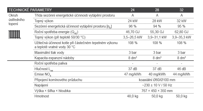 dodatečný systém odhlučnění založený na moderních zvuk pohlcujících materiálech umožňuje tichý provoz – hladina akustického hluku pouze 37 dB (týká se kotlů 24, 28, 24/30 kW)