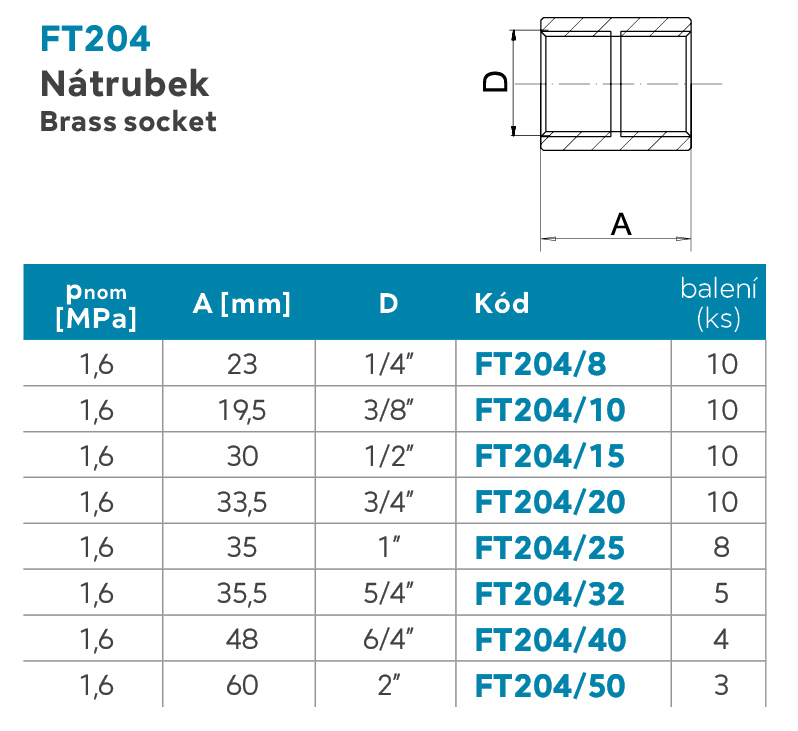 od 22 Kč Nátrubek - hrdlo Možnosti provedení (8) Vyberte variantu 1/4", [FT204/8] (22 Kč) 1", [FT204/25] (129 Kč) 1/2", [FT204/15] (53 Kč) 2", [FT204/50] (425 Kč) 3/4", [FT204/20] (63 Kč) 3/8", [FT204/10] (27 Kč) 5/4", [FT204/32] (229 Kč) 6/4", [FT204/40] (287 Kč)