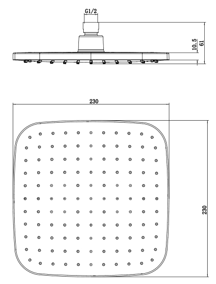 Pevná hlavová sprcha s kloubovou maticí pro nastavení polohy a s EASY CLEAN systémem, který usnadňuje čištění trysek od vodního kamene, rozměr 230 x 230 mm, černá-mat