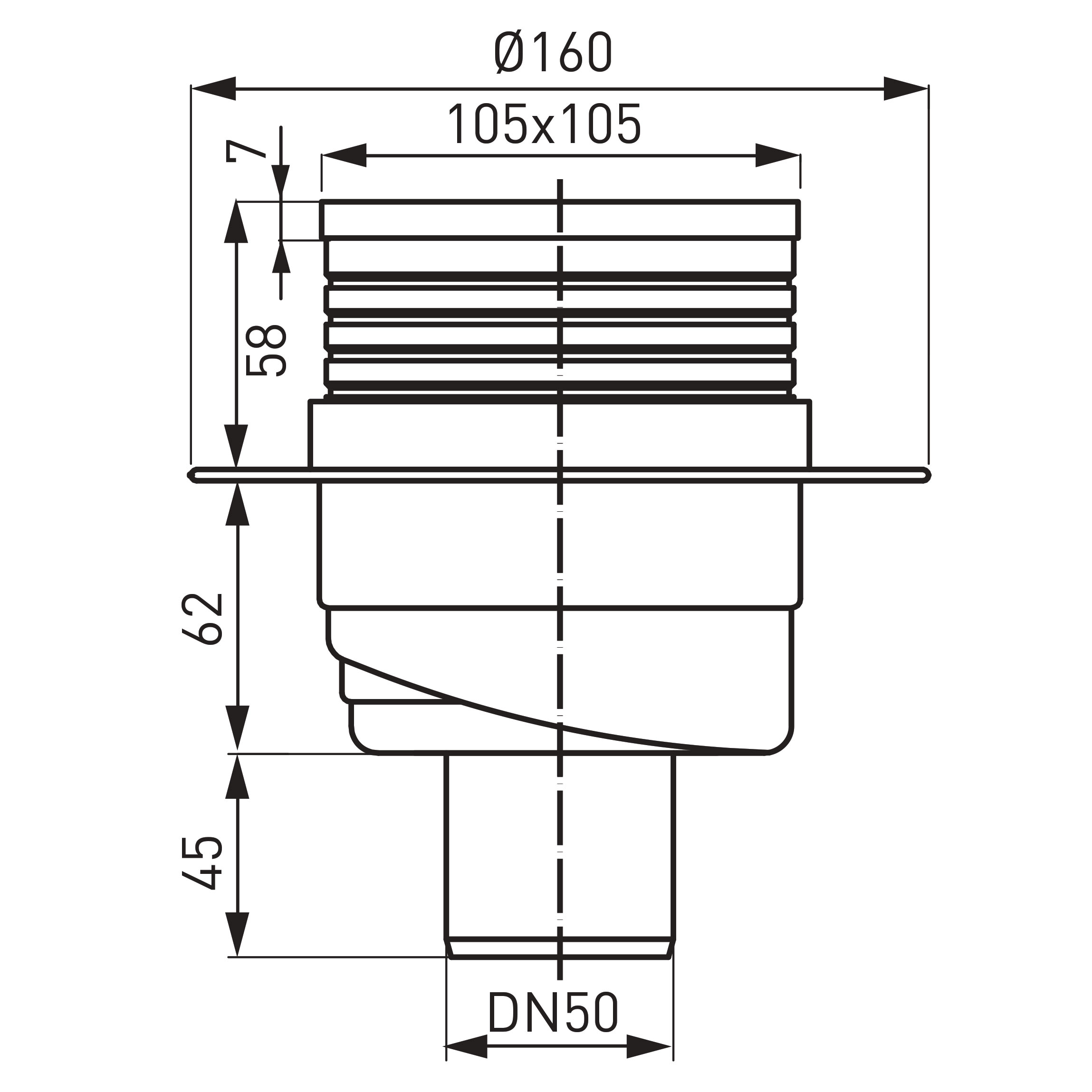 Rozměr 105 x 105 mm. Průměr odpadu 50 mm. Tělo sifonu je plastové.Nerezová mřížka 105 x 105 mm.