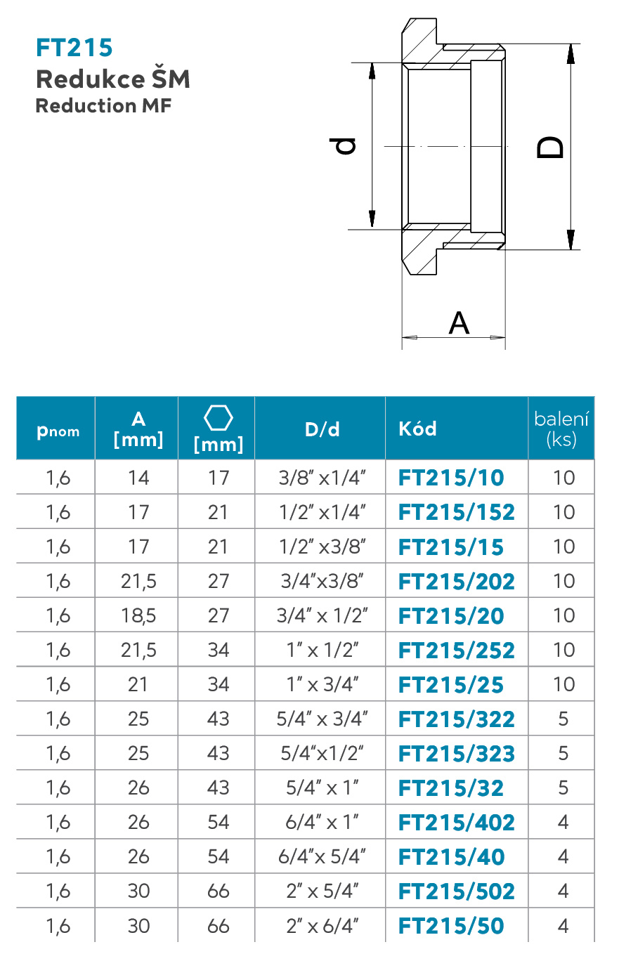 od 17 Kč Redukce Možnosti provedení (14) Vyberte variantu 3/8"x1/4", [FT215/10] (17 Kč) 1"x3/4", [FT215/25] (62 Kč) 1"x1/2", [FT215/252] (85 Kč) 1/2"x3/8", [FT215/15] (27 Kč) 1/2" x 1/4", [FT215/152] (34 Kč) 2"x6/4", [FT215/50] (275 Kč) 2"x5/4", [FT215/502] (321 Kč) 3/4"x1/2", [FT215/20] (39 Kč) 3/4"x3/8", [FT215/202] (53 Kč) 5/4"x1", [FT215/32] (133 Kč) 5/4"x3/4", [FT215/322] (171 Kč) 6/4"x5/4", [FT215/40] (146 Kč) 6/4"x1", [FT215/402] (206 Kč) 5/4"x1/2", [FT215/323] (195 Kč)