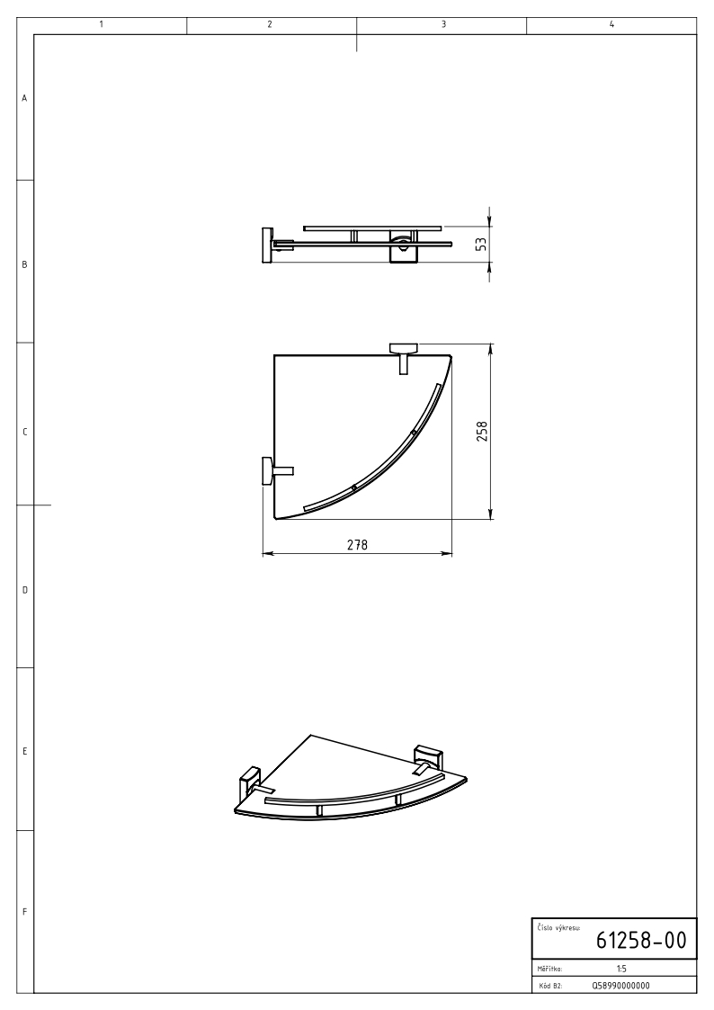 Skleněná polička se zábradlím do rohu.