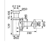 Celokovový černý sifon s 5/4 "závitem. Určený pro baterie s uzávěrem výpusti. Průměr odpadu 32 mm.