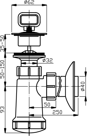Průměr odpadu 40 mm. Plastová, bílá mřížka.