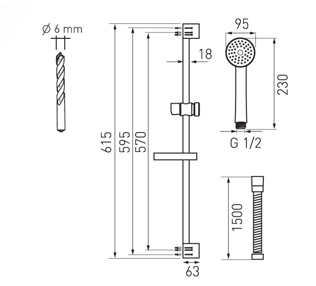 kovovou hadici 150 cm a plastovou mýdlenku.
