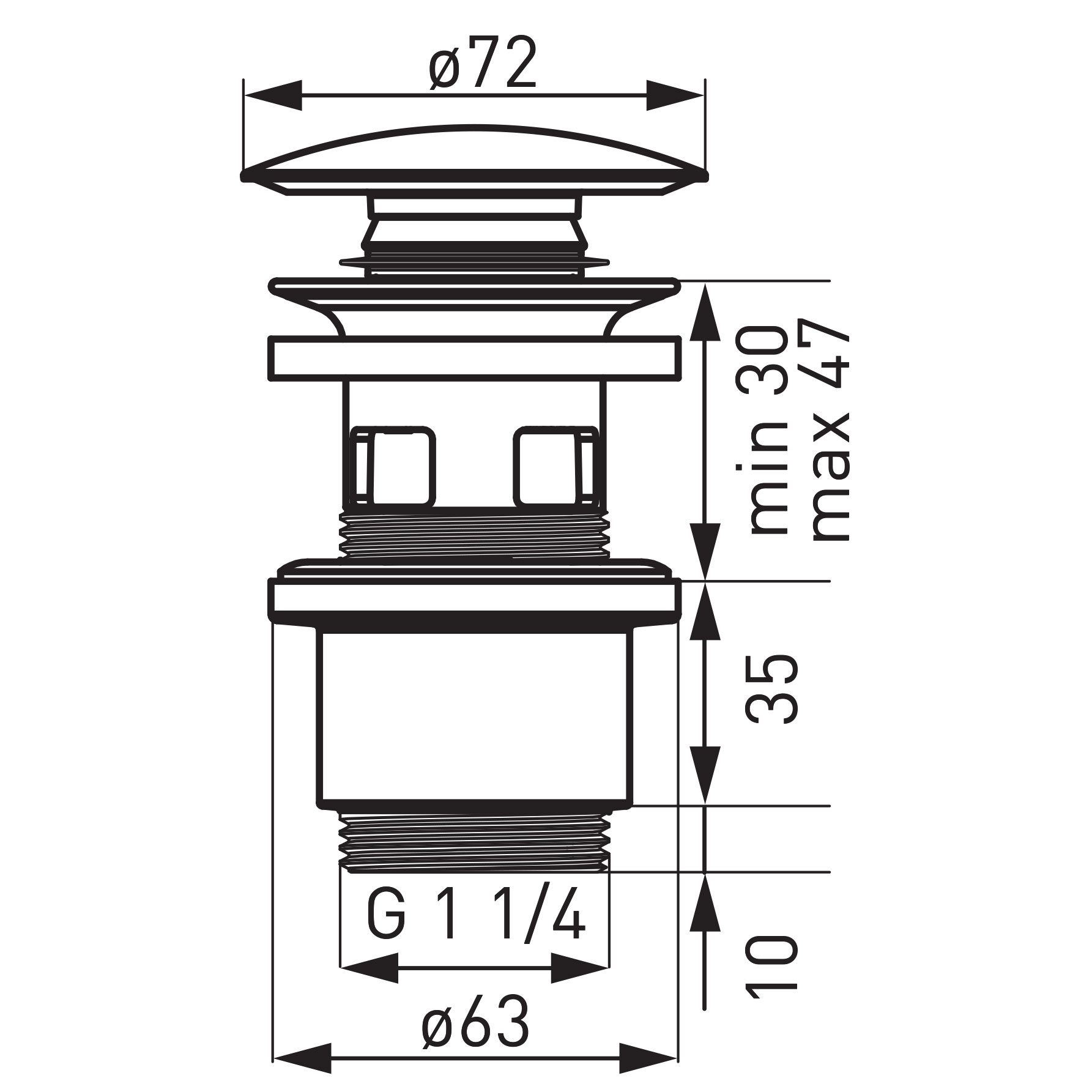 169 Kč [S287PP-B] Uzávěr výpusti 5/4" pro umyvadlo s přepadem - zátka nerez Provedení: leštěná nerez do košíku
